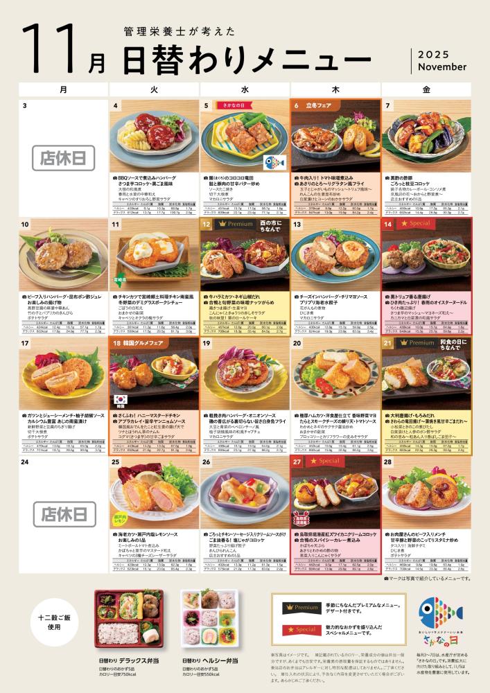 新鮮な肉や魚、旬の野菜などをとりいれ、揚げ物は身体に良い米油を、お米は契約農家さんの美味しいコシヒカリを使用しています。毎日、飽きのこない手作りのお弁当をお届けします。